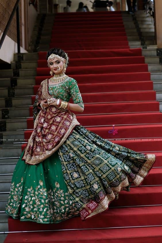 Wearing White Red And Green Lehenga With Intricate Gold | Download Image